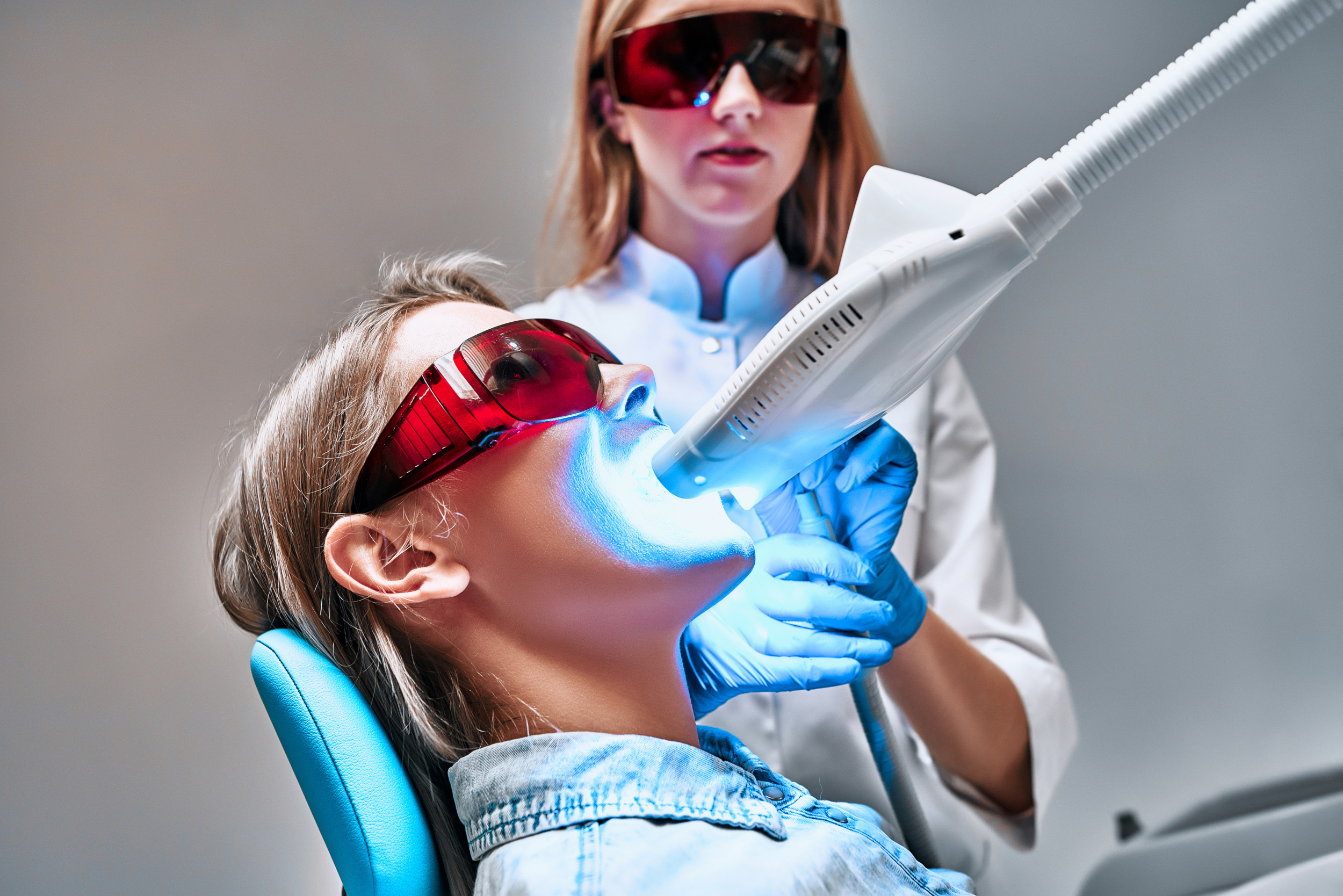 Behandlingen går till så att vi först fastställer tändernas vithet med hjälp av Vitapan Vita Classics tandkarta, en hållare sätts sedan in i munnen för att hålla isär käkarna och läpparna. En skyddsgel appliceras längs tandköttskanten och en gel med väteperoxid appliceras på tänderna och därefter aktiveras gelen med LED ljus, under behandlingen byts gelen ut tre gånger. Behandlingen avslutas med att på nytt fastställa tändernas vithet.