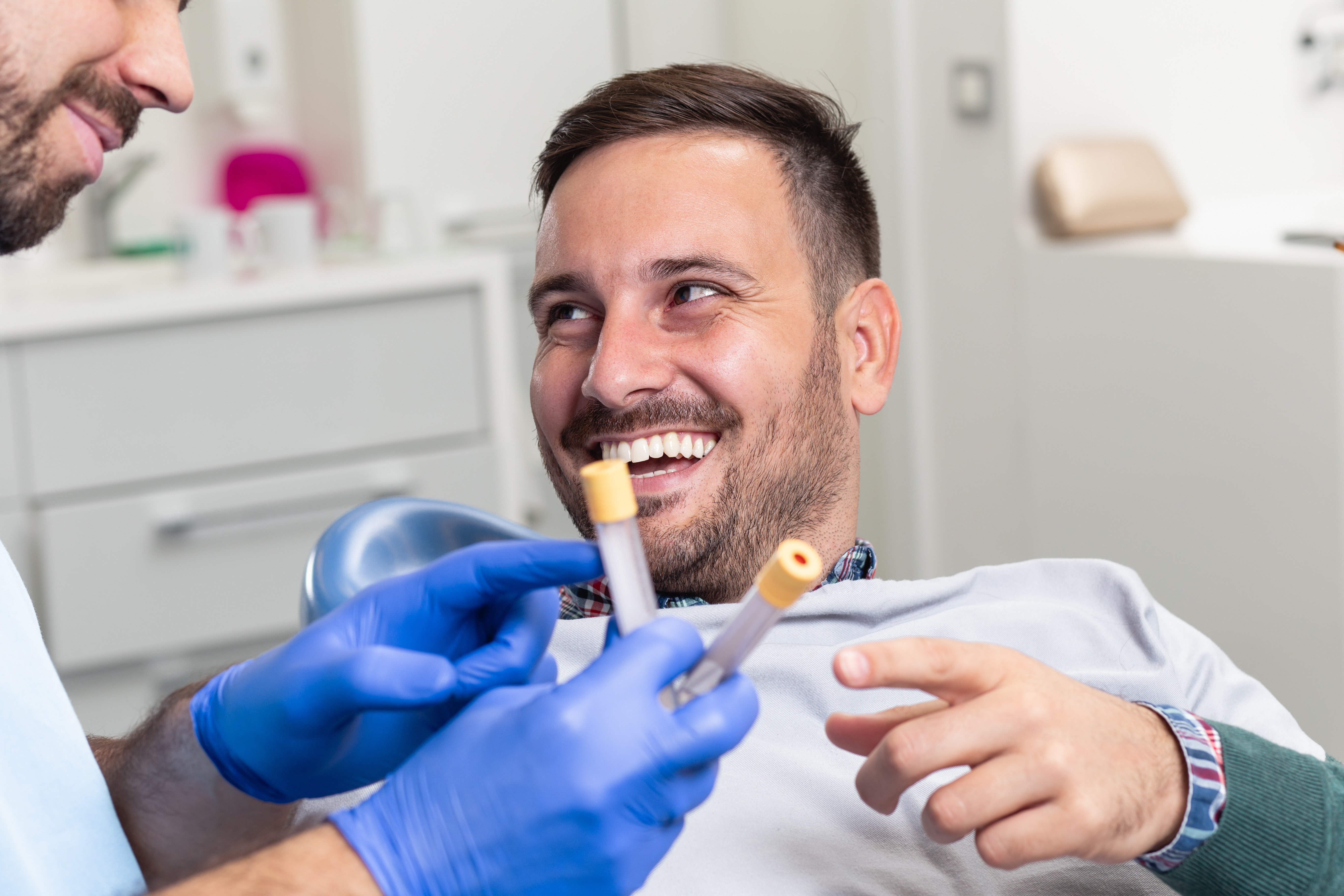 Vi erbjuder professionell kliniktandblekning med Beyond Dent som är en av marknadens mest skonsamma och effektiva metoder. En full behandling tar upp till 60 minuter och tänderna blir i genomsnitt sju nyanser vitare efter behandlingen.